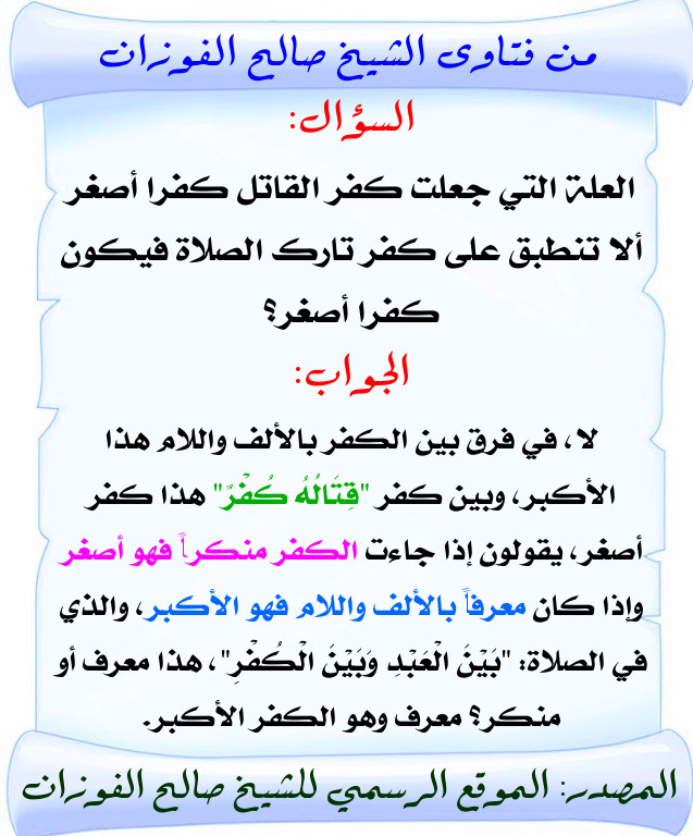 بطاقة الفرق بين كفر القاتل وتارك الصلاة