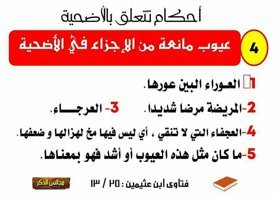 بطاقة أحكام تتعلق بالأضحية 4: عيوب مانعة من الأضحية
