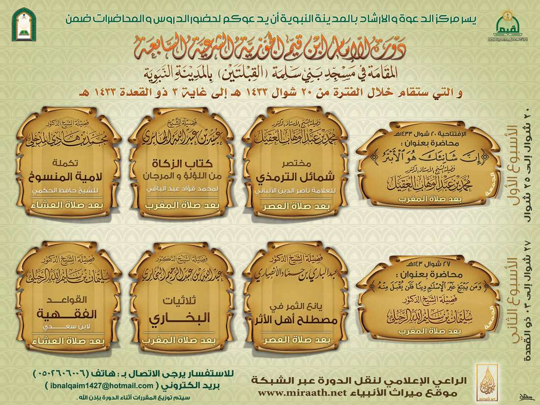 | كلمة افتتاحية للدورة | الشيخ محمد بن هادي المدخلي | 2012-09-14 |