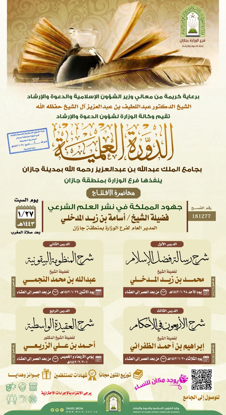 | جهود المملكة في نشر العلم الشرعي | الشيخ أسامة بن زيد المدخلي | 2021-09-04 |