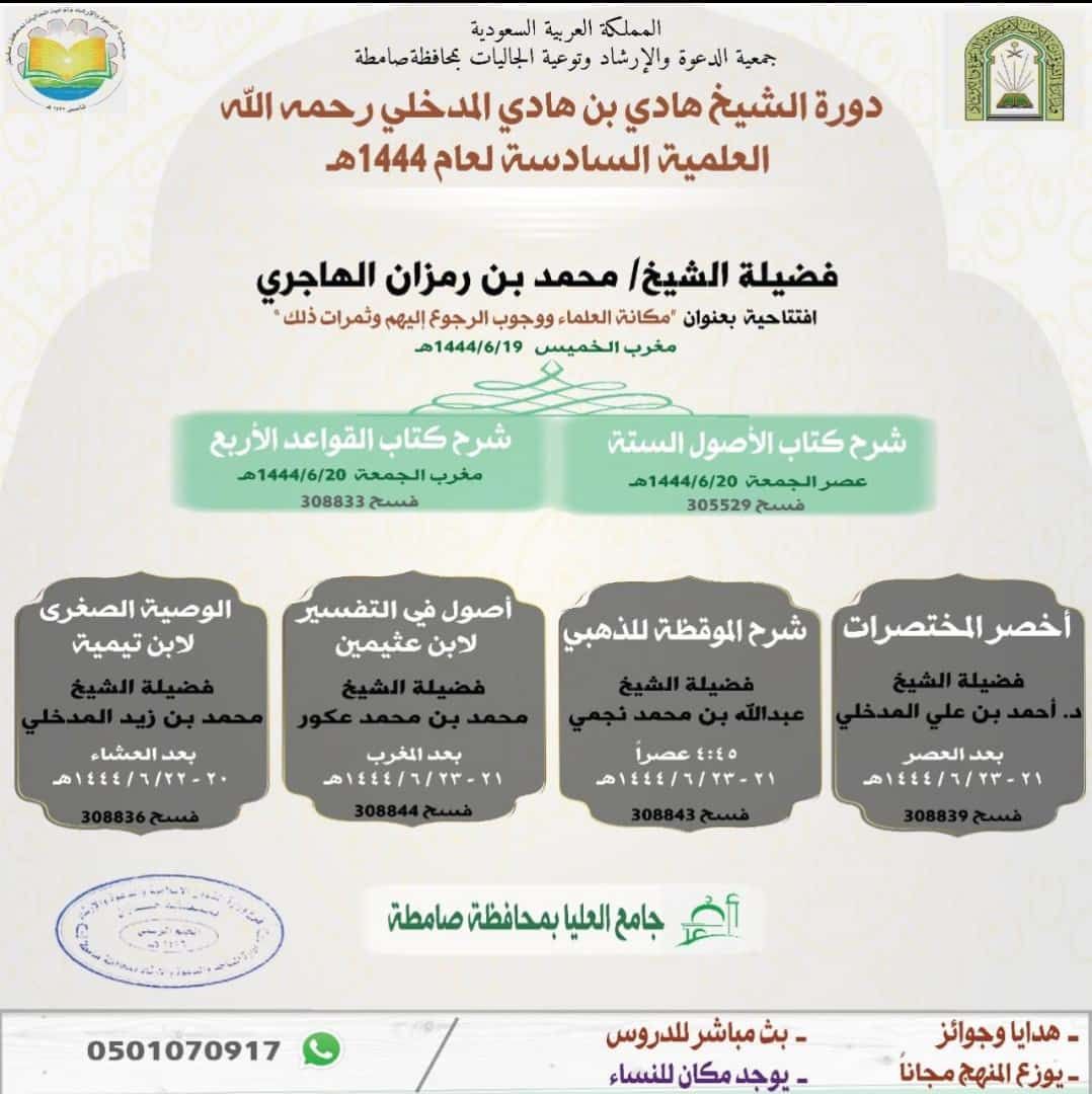دورة الشيخ هادي بن هادي المدخلي 6 لعام 1444 هـ