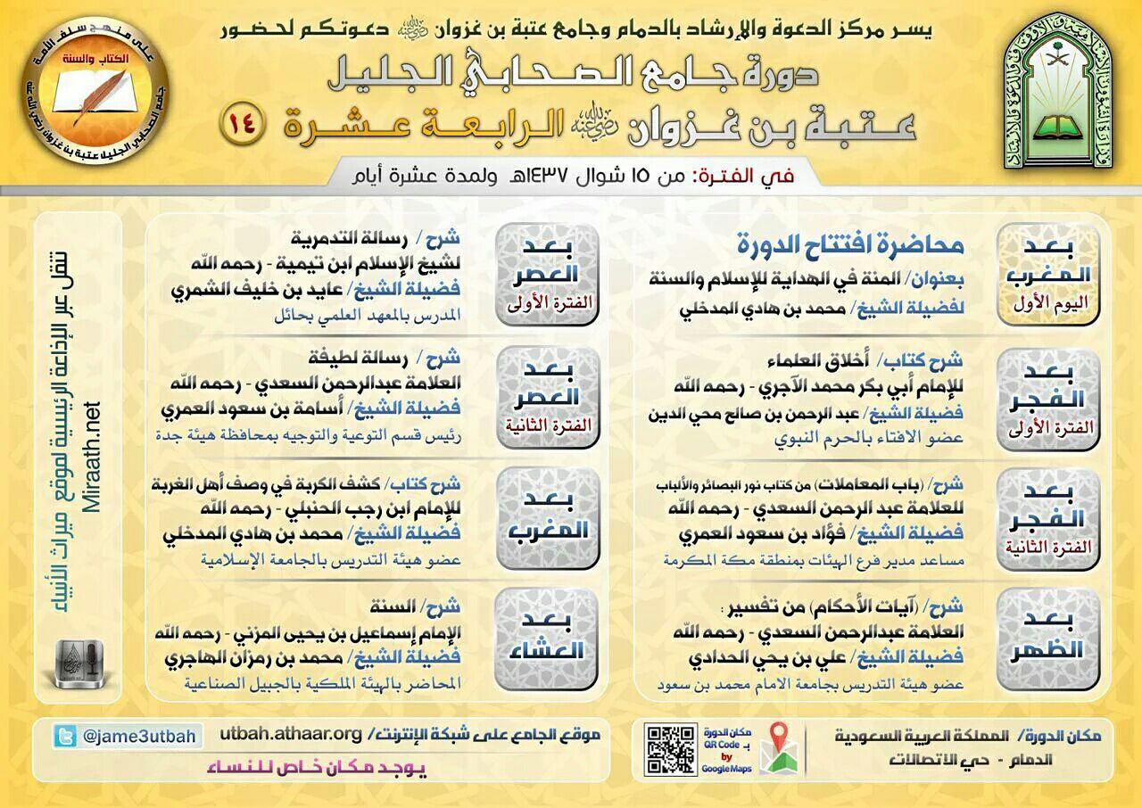 | لقاء مفتوح مع طلاب دورة جامع عتبة | الشيخ محمد بن هادي المدخلي | 2000-01-01 |