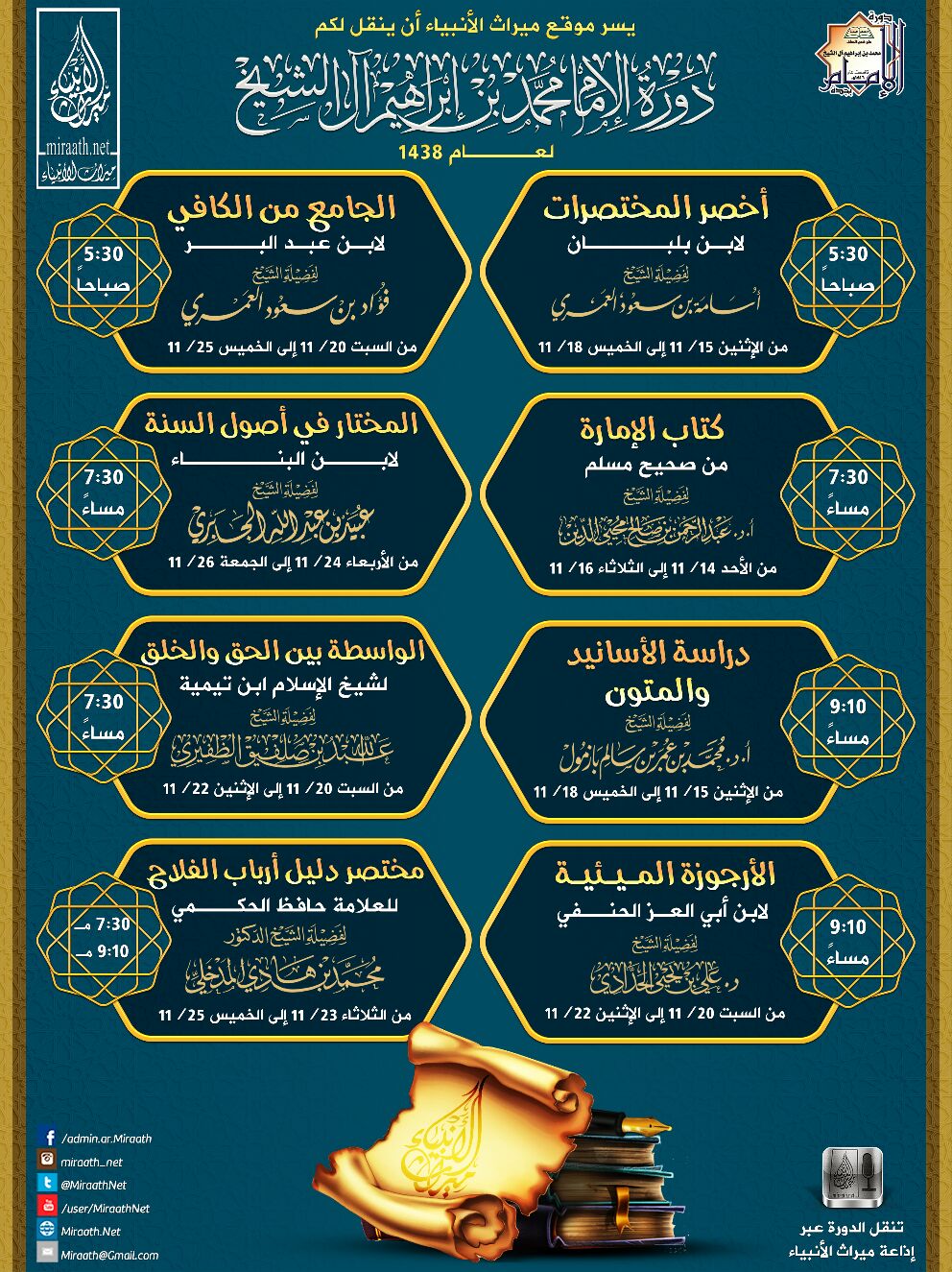 | لقاء مفتوح ضمن دورة محمد بن ابراهيم 1438 هـ | الشيخ محمد بن هادي المدخلي | 2017-08-17 |