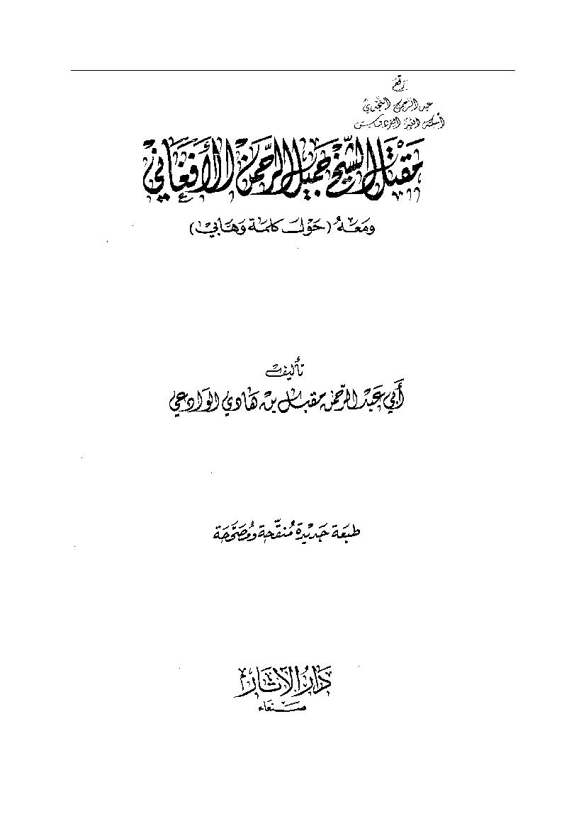 المؤلف : الشيخ مقبل بن هادي الوادعي