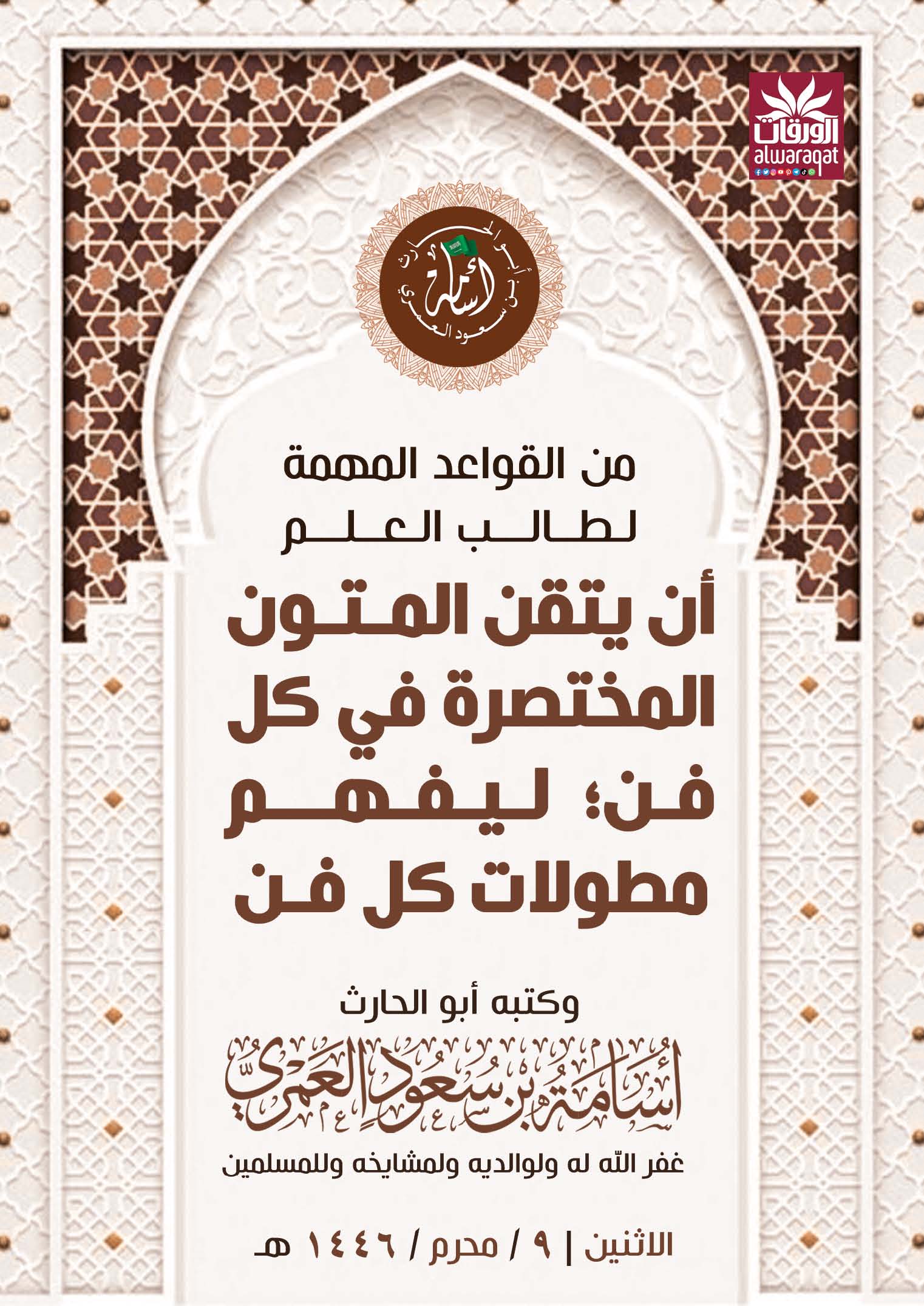 مقال من القواعد المهمة لطالب العلم أن يتقن المتـون المختصرة في كل فن ليفهم مطولات كل فن الشيخ أسامة بن سعود العمري