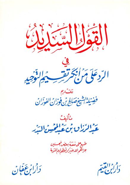 متن القول السديد في الرد على من أنكر تقسيم التوحيد الشيخ عبد الرزاق بن عبد المحسن البدر