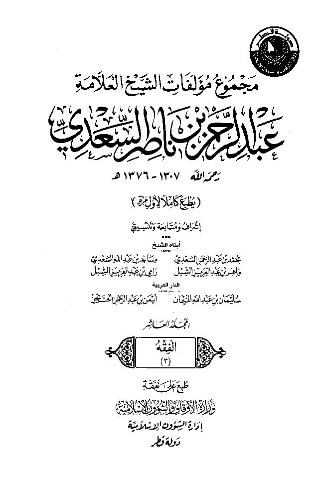 متن مؤلفات الشيخ السعدي 10 الشيخ عبد الرحمن بن ناصر السعدي
