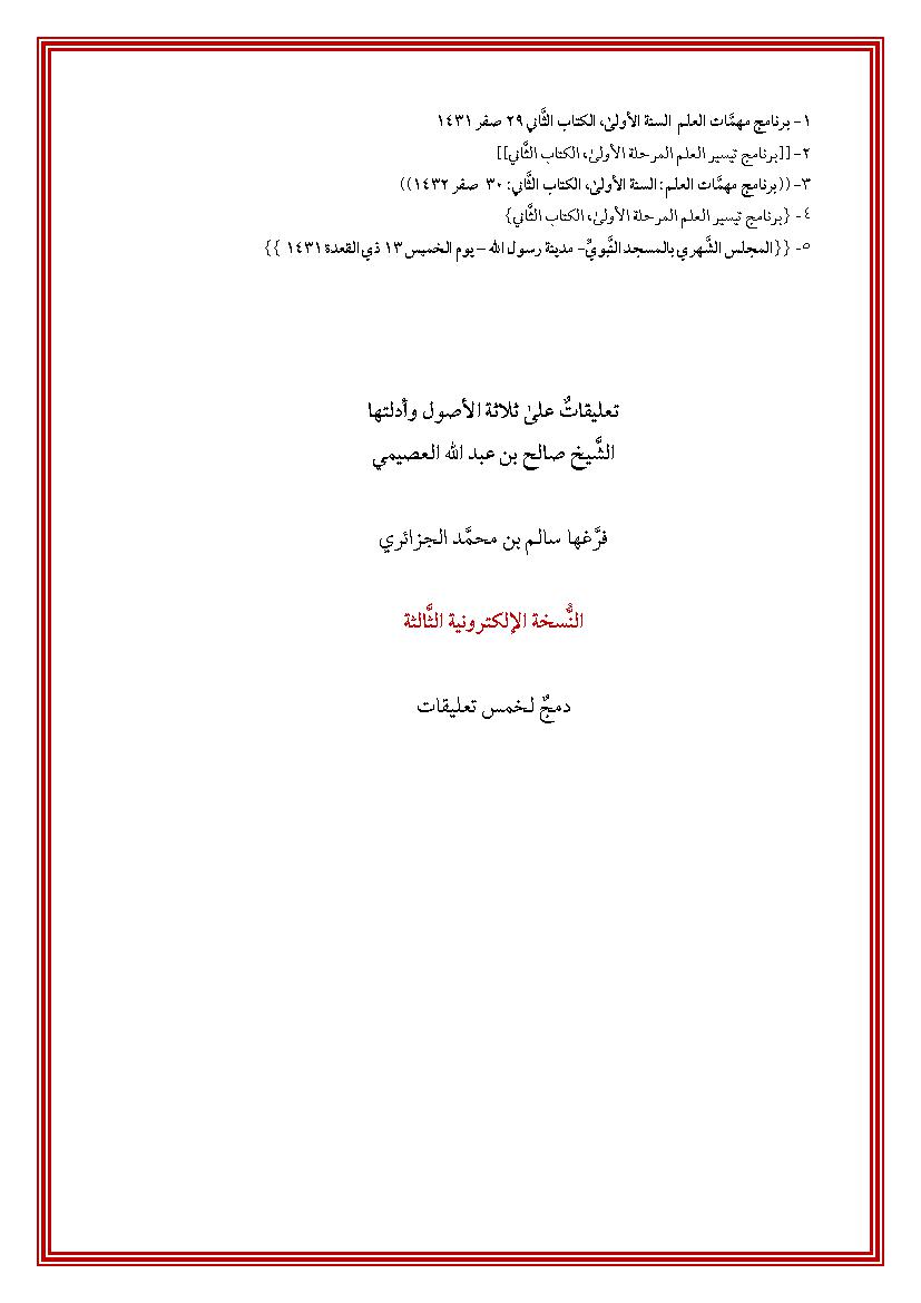 التصنيف : شرح لمتن ثلاثة الأصول وأدلتها