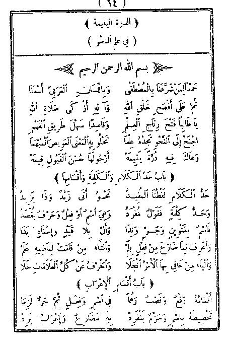 التصنيف : شرح لمتن الدرة اليتيمة في علم النحو