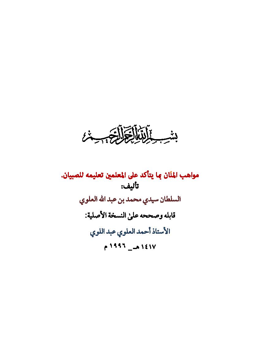 التصنيف : شرح لمتن مواهب المنان فيما يتعين تعليمه للصبيان
