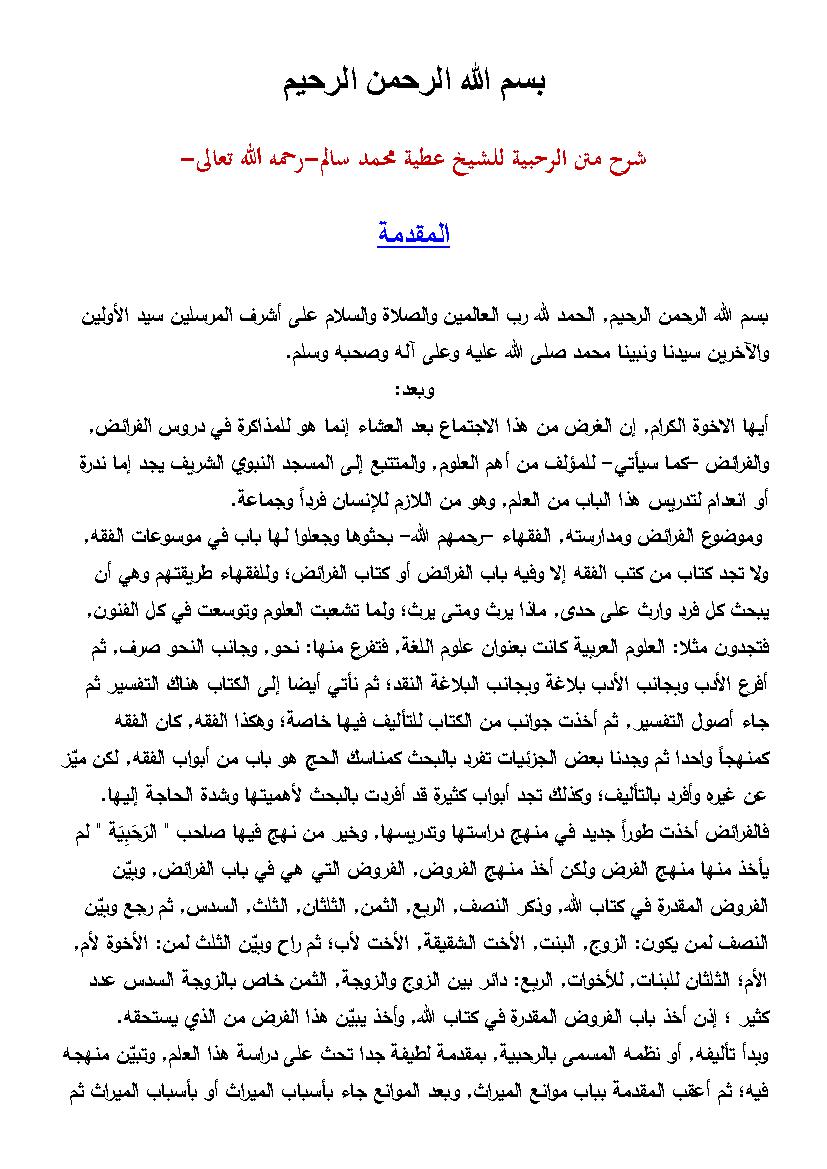 التصنيف : شرح لمتن الرحبية (بغية الباحث عن جمل الموارث)