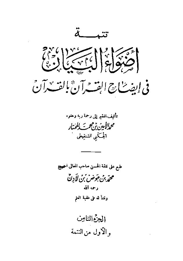 التصنيف : شرح لمتن أضواء البيان في إيضاح القرآن بالقرآن