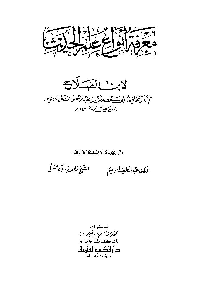 التصنيف : شرح لمتن معرفة أنواع علم الحديث (مقدمة ابن الصلاح)