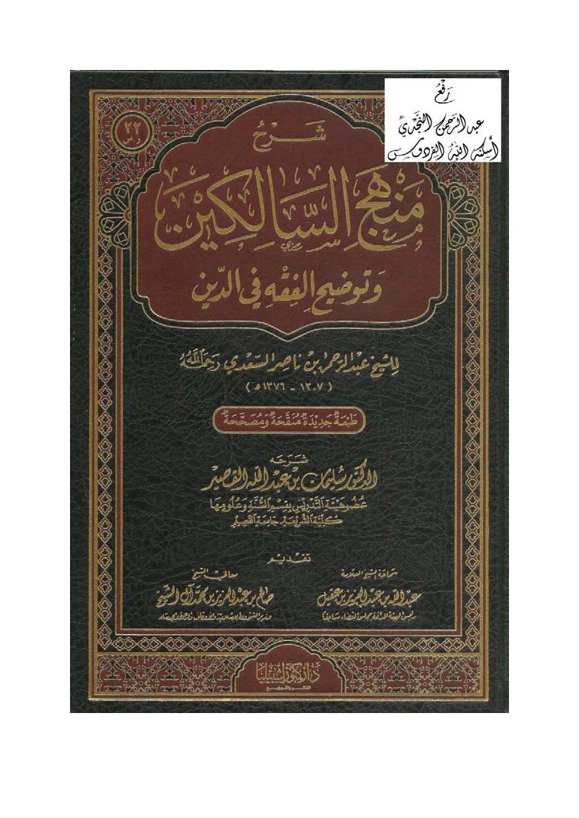 التصنيف : شرح لمتن منهج السالكين وتوضيح الفقه في الدين