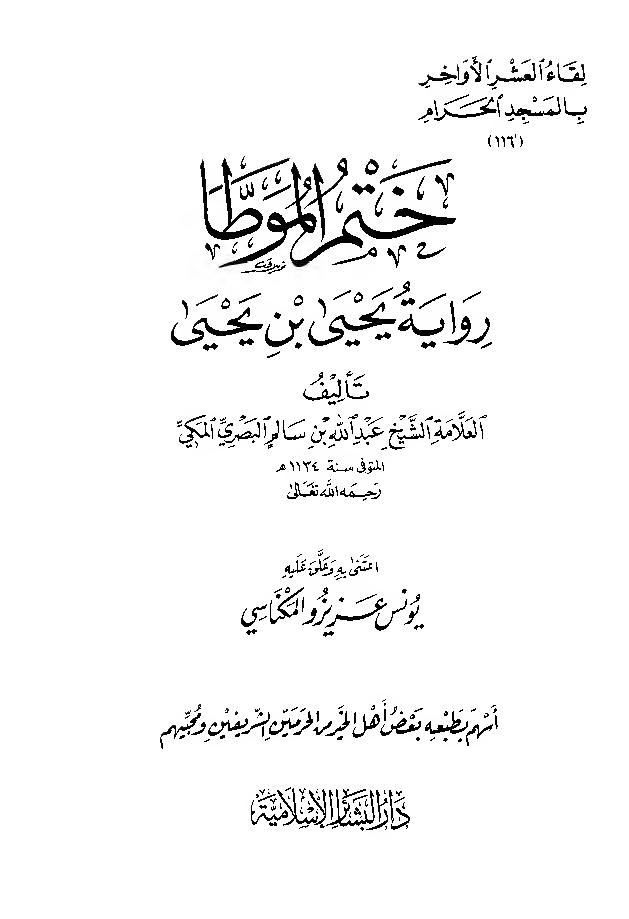 التصنيف : شرح لمتن موطأ الإمام مالك