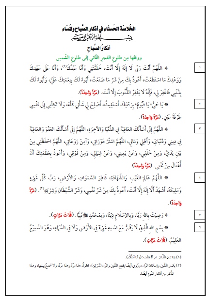 التصنيف : شرح لمتن الخلاصة الحسناء في أذكار الصباح والمساء