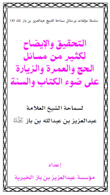 التصنيف : شرح لمتن التحقيق والإيضاح لكثير من مسائل الحج والعمرة والزيارة على ضوء الكتاب والسنة