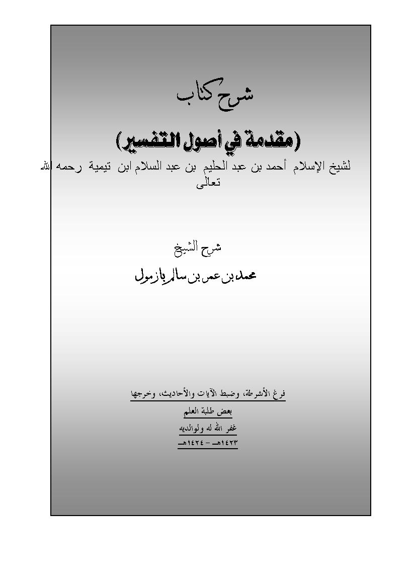 التصنيف : شرح لمتن مقدمة في أصول التفسير
