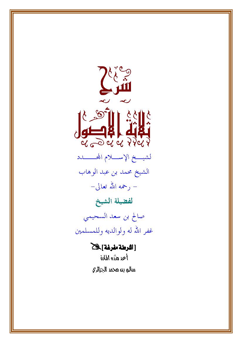 التصنيف : شرح لمتن ثلاثة الأصول وأدلتها