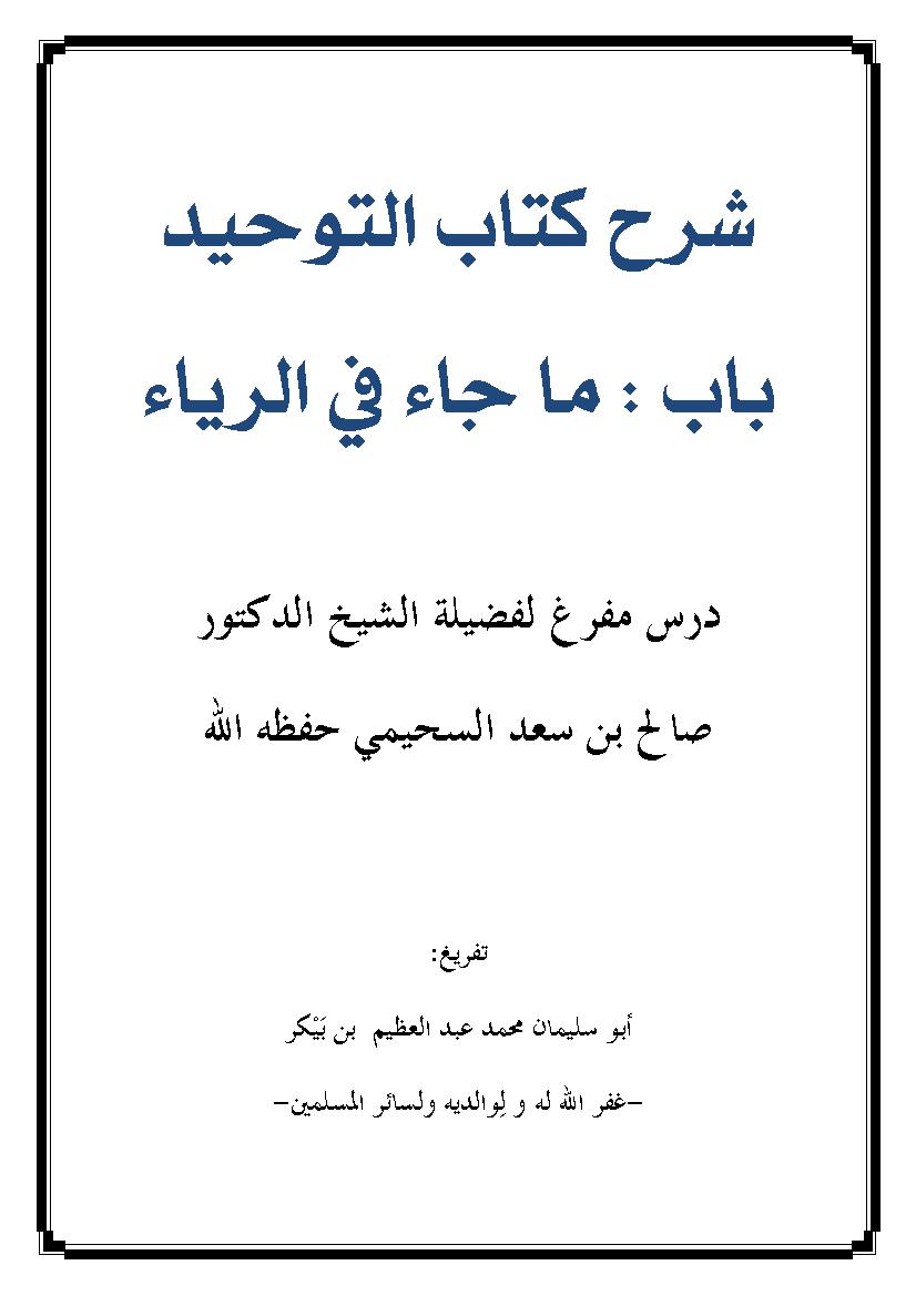 التصنيف : شرح لمتن كتاب التوحيد الذي هو حق الله على العبيد