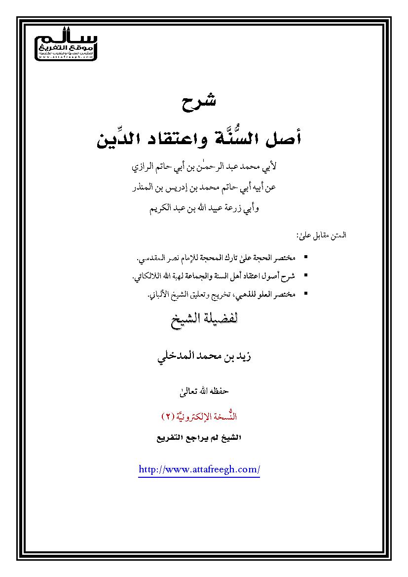 التصنيف : شرح لمتن أصل السنة واعتقاد الدين (عقيدة الرازيين)