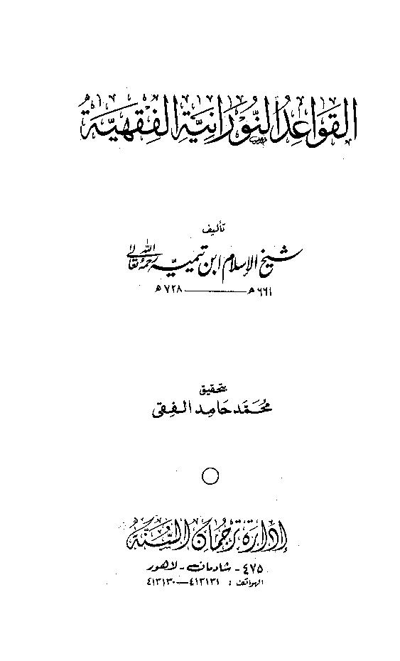 التصنيف : شرح لمتن القواعد النورانية الفقهية (القواعد الكلية)