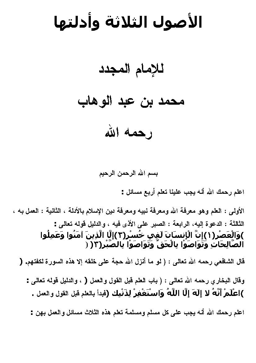 التصنيف : شرح لمتن ثلاثة الأصول وأدلتها