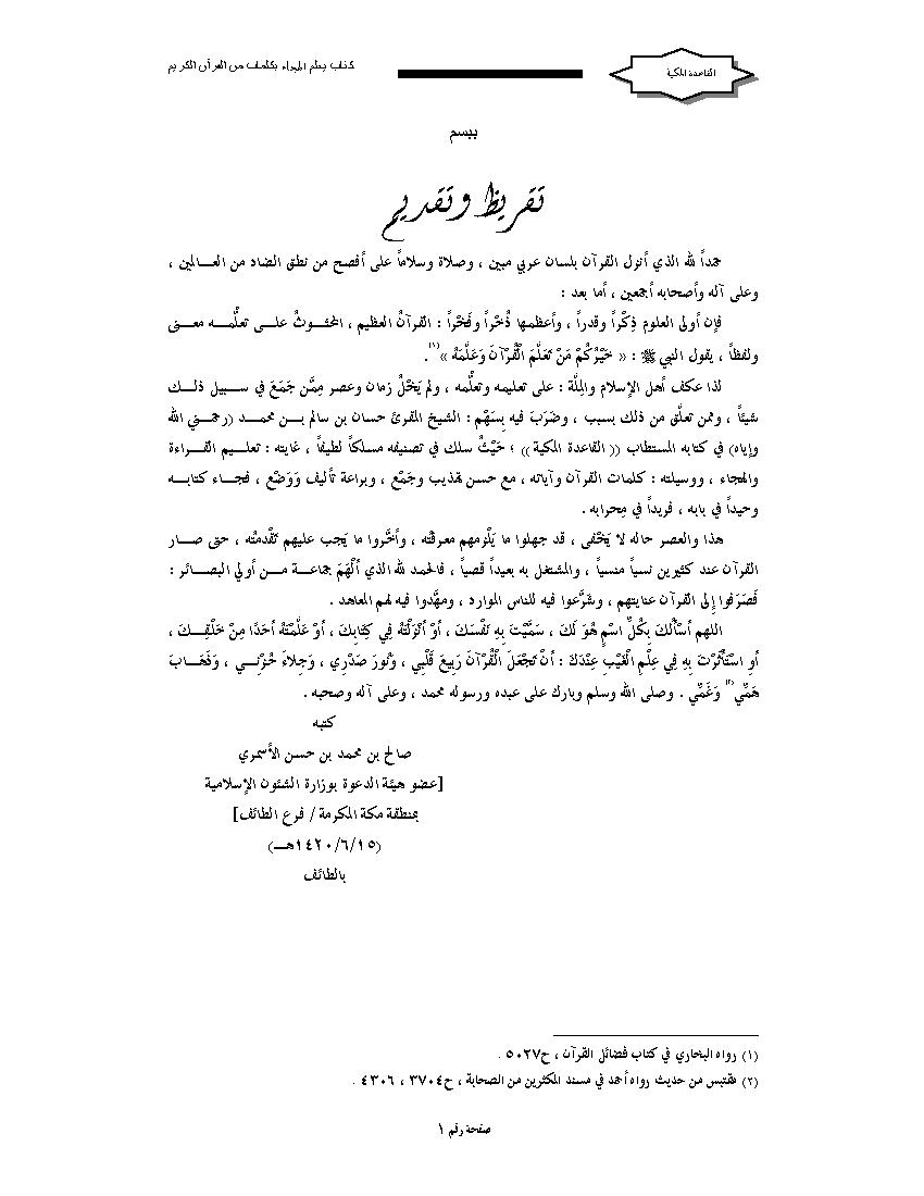 التصنيف : شرح لمتن القاعدة المكية