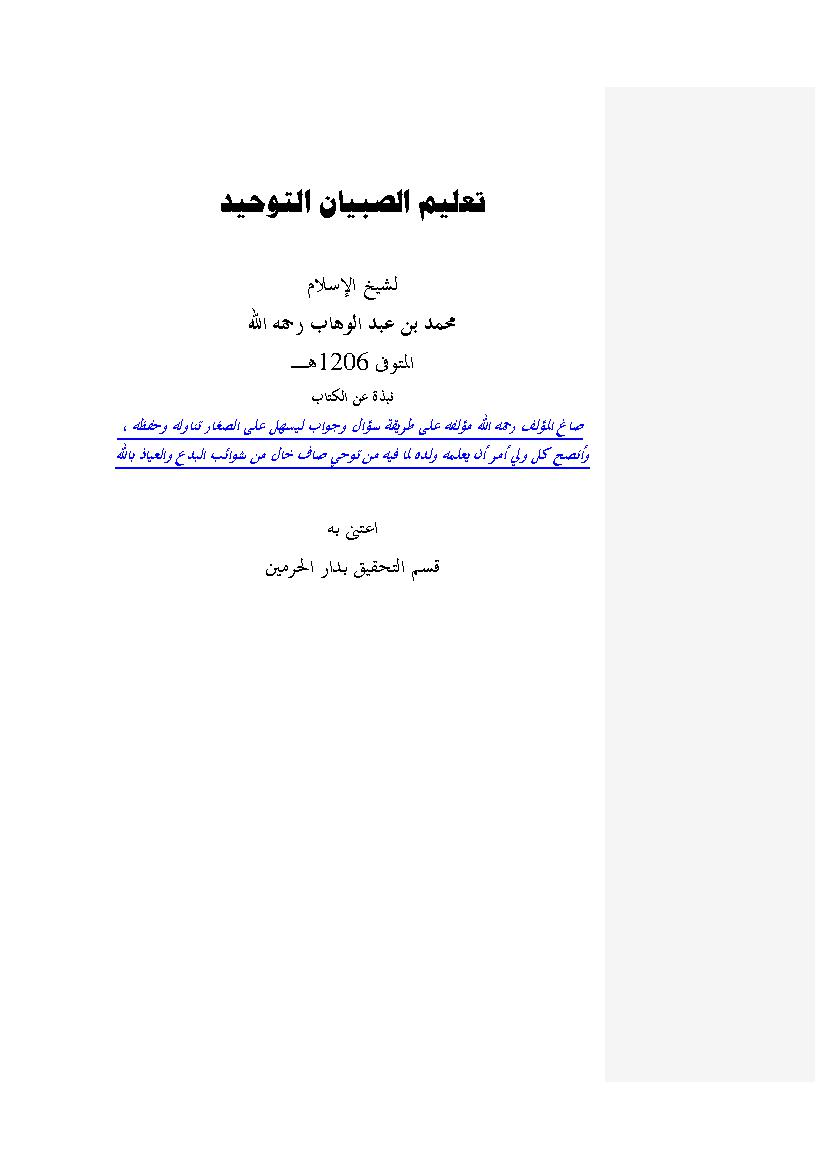 التصنيف : شرح لمتن تعليم الصبيان التوحيد