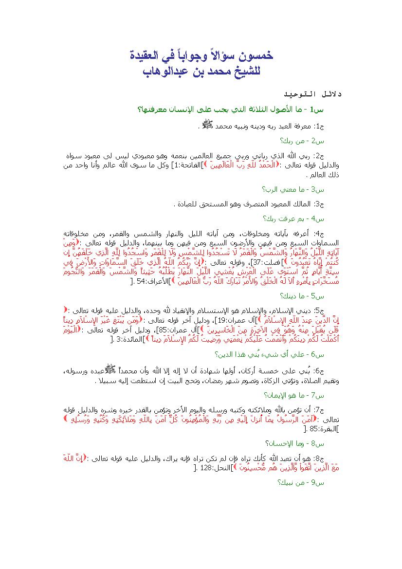 التصنيف : شرح لمتن خمسون سؤالا وجوابا في العقيدة