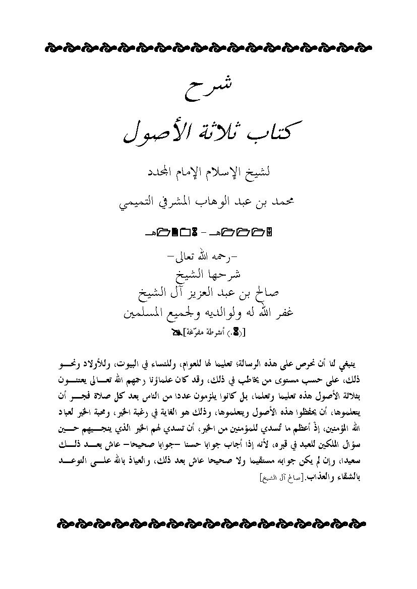 التصنيف : شرح لمتن ثلاثة الأصول وأدلتها