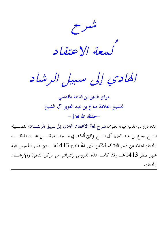 التصنيف : شرح لمتن لمعة الإعتقاد