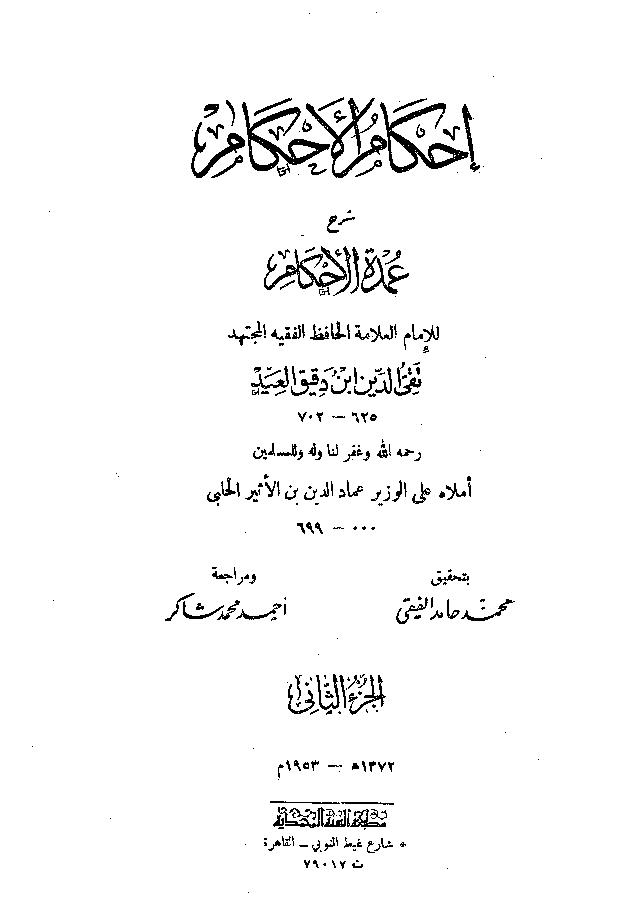 الشارح : الشيخ محمد بن علي بن دقيق العيد