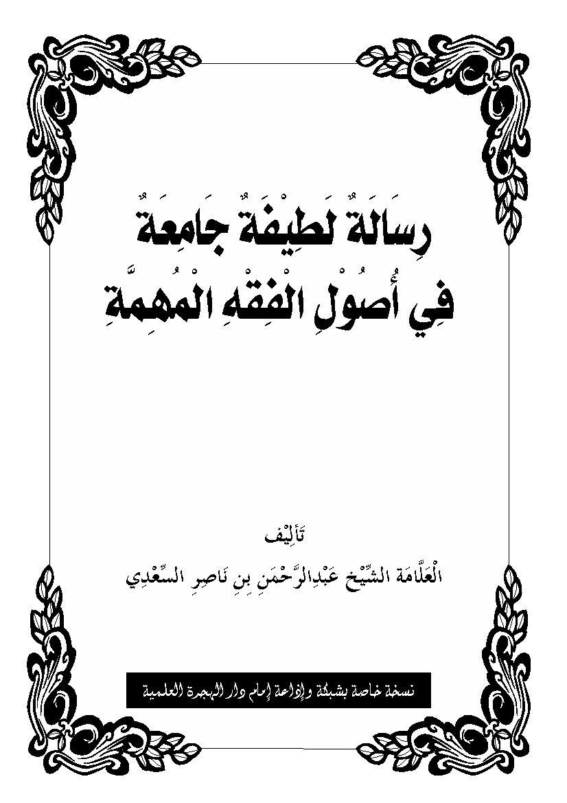 التصنيف : شرح لمتن رسالة لطيفة جامعة في أصول الفقه المهمة