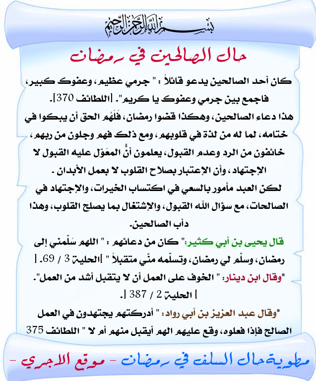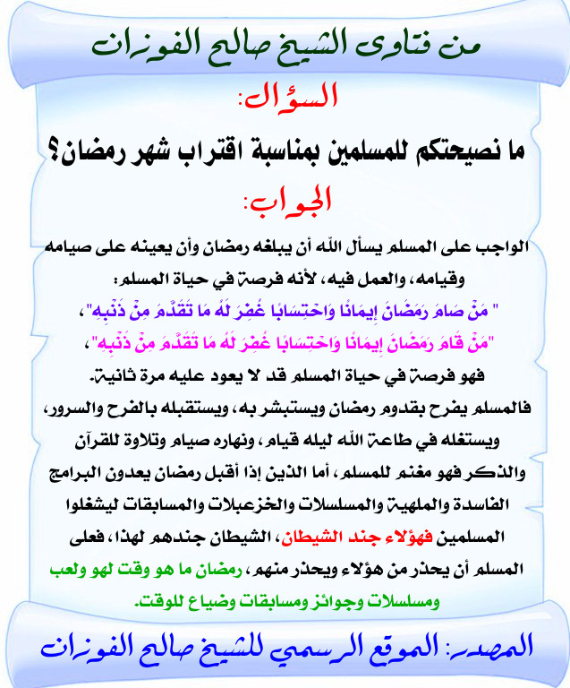 نصيحتكم للمسلمين بمناسبة اقتراب شهر رمضان |