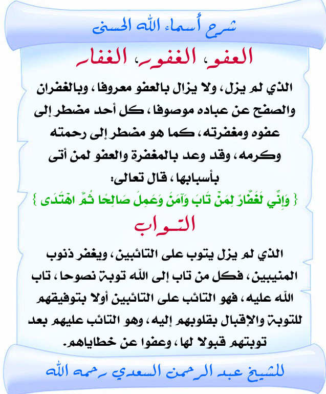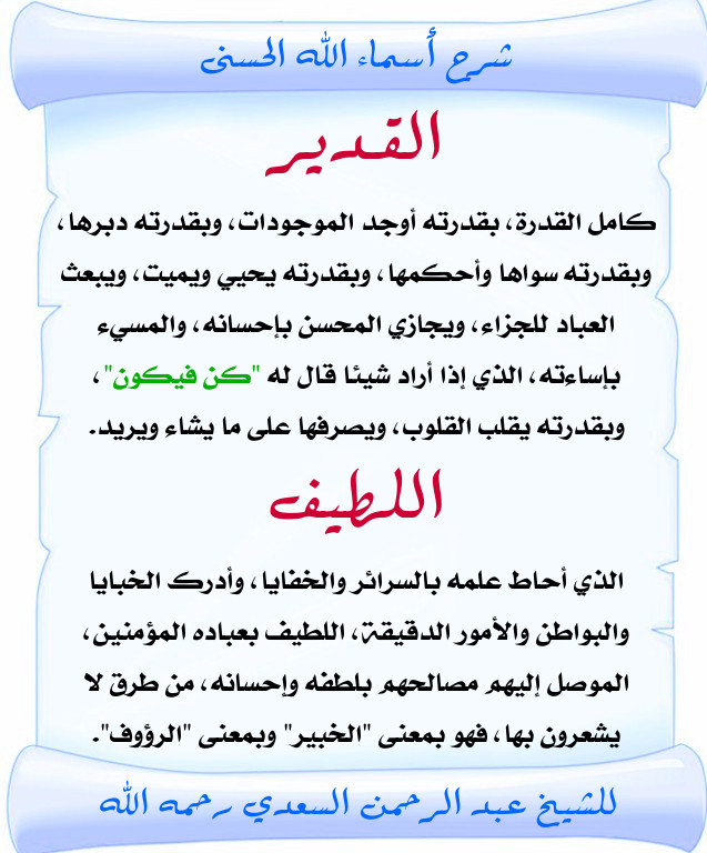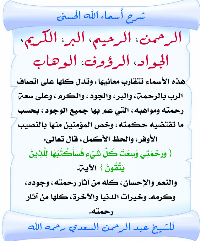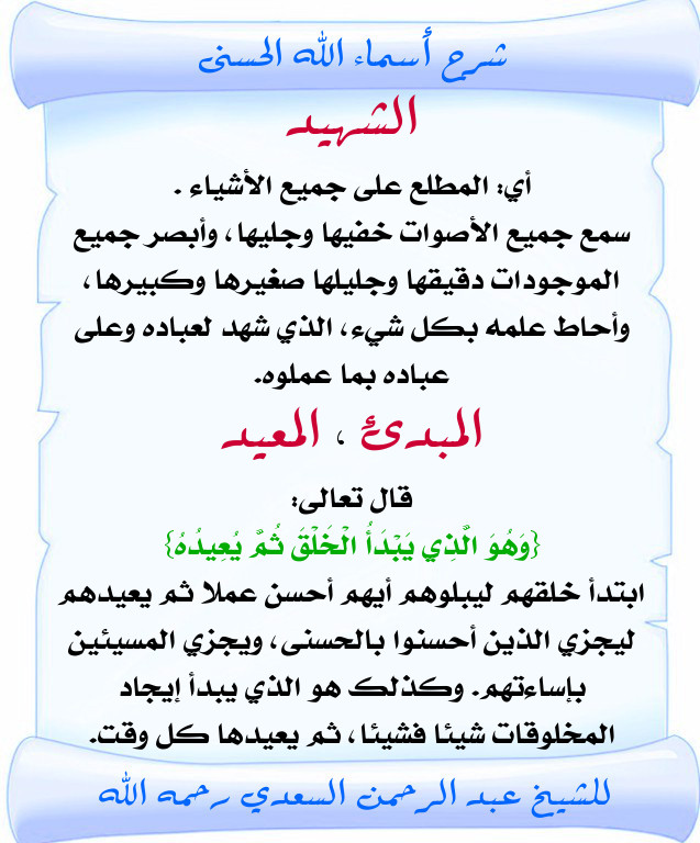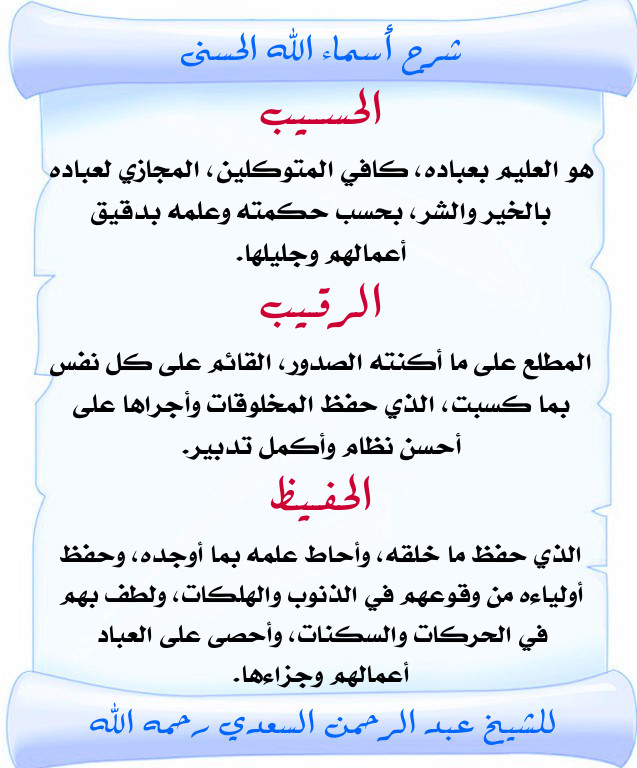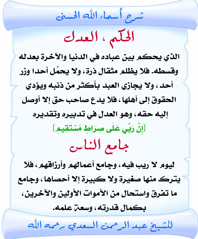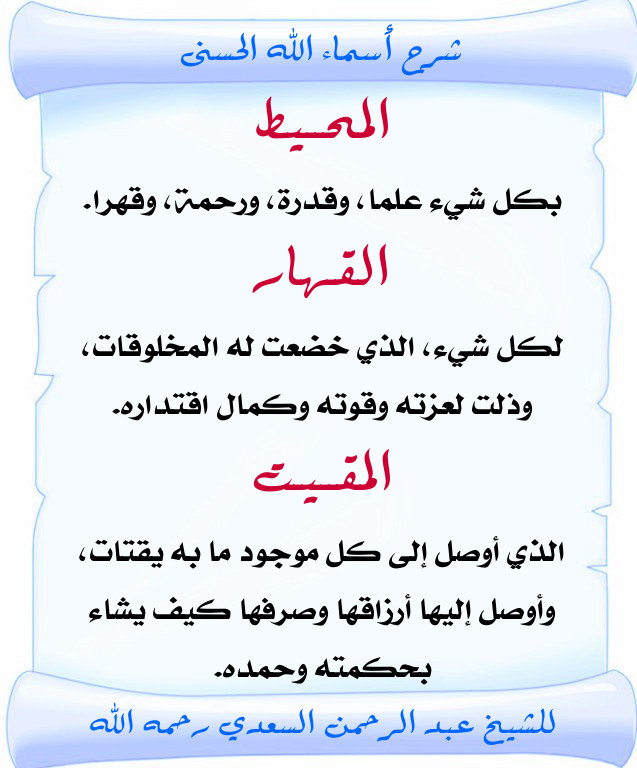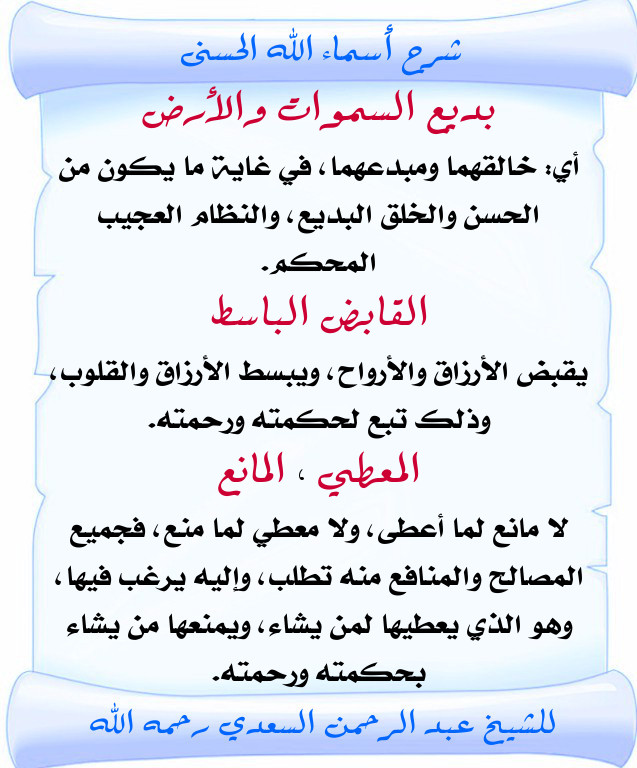 الجبار، المتكبر، الخالق، البارئ، المصور |