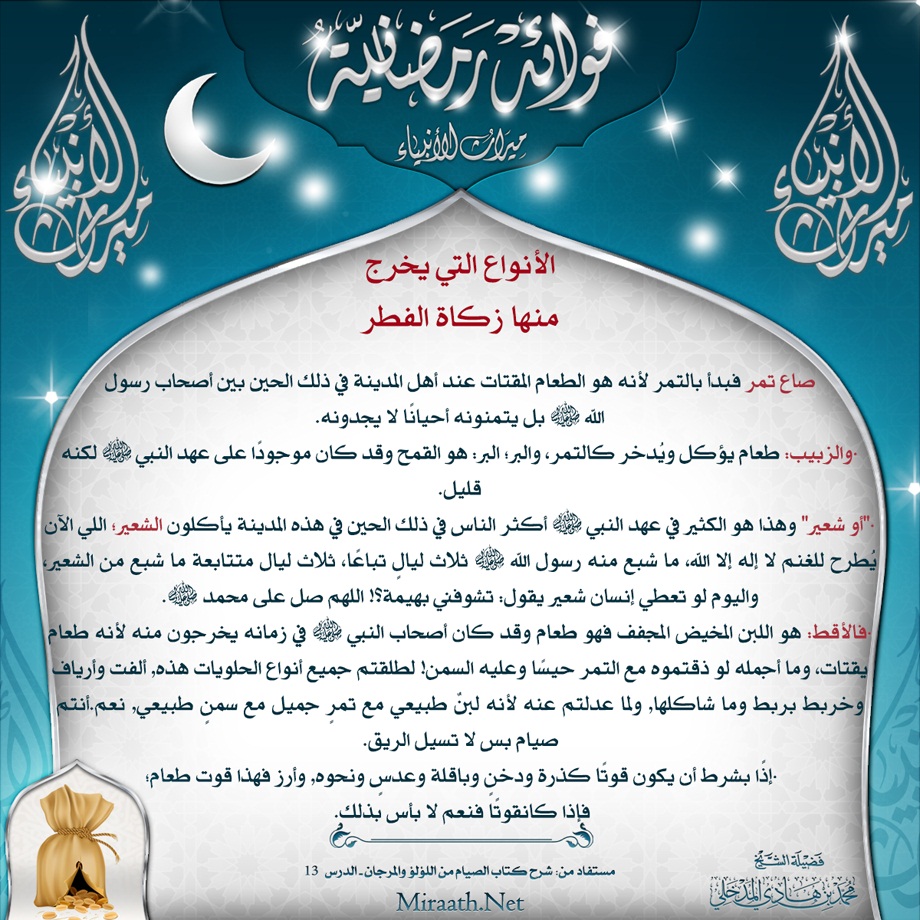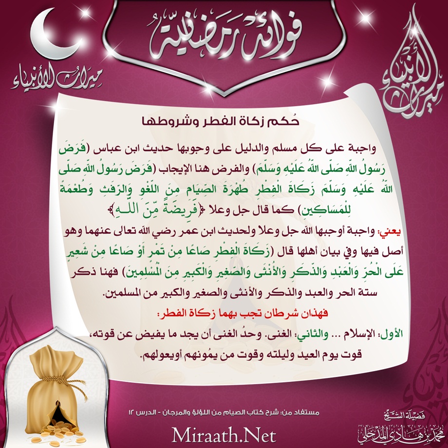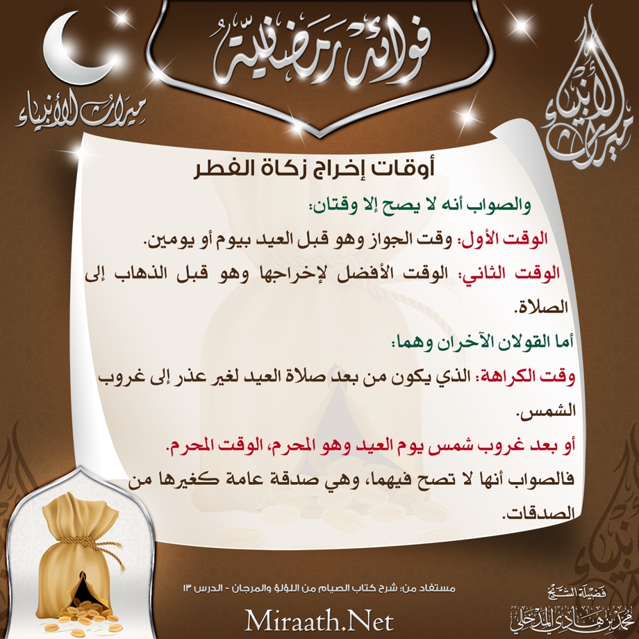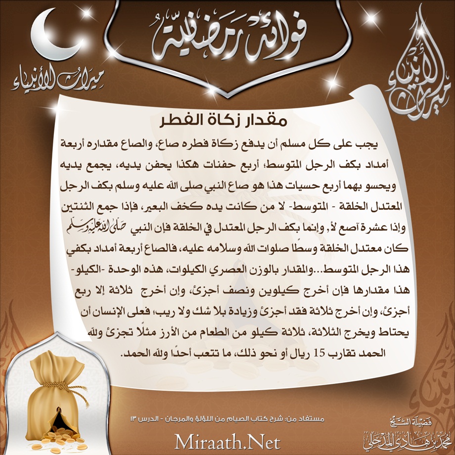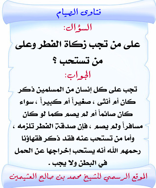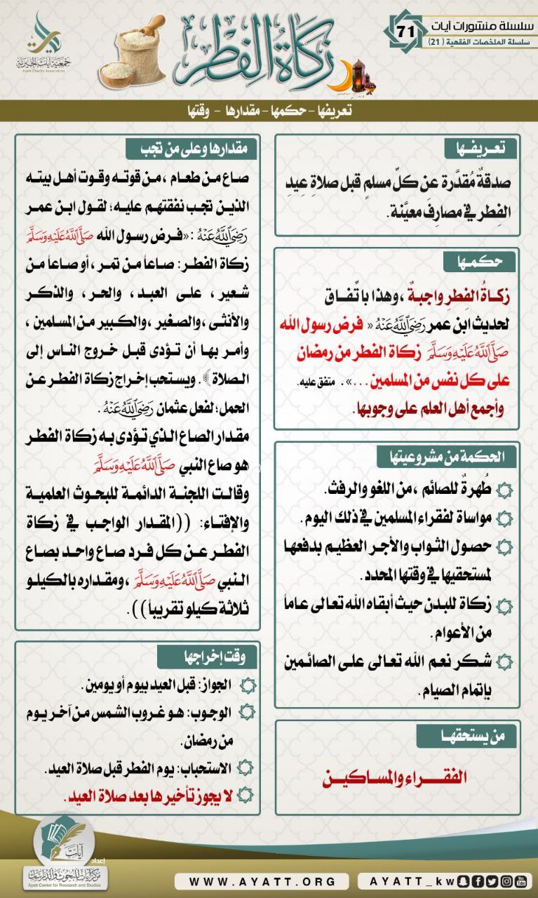 زكاة الفطر - تعريفها - حكمها - مقدارها - وقتها |