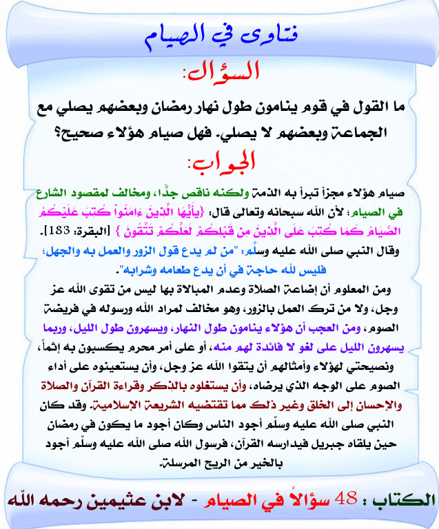 كثير من الناس همهم في رمضان جلب الطعام والنوم |
