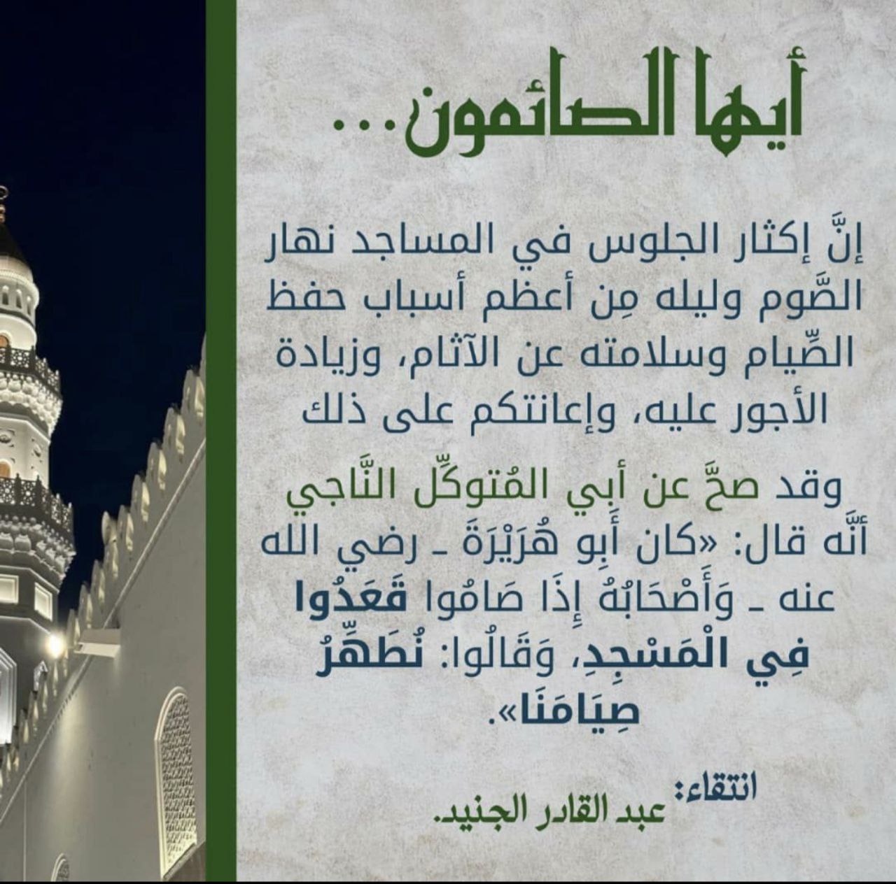 إكثار الجلوس في المساجد نهار الصَّوم وليله |